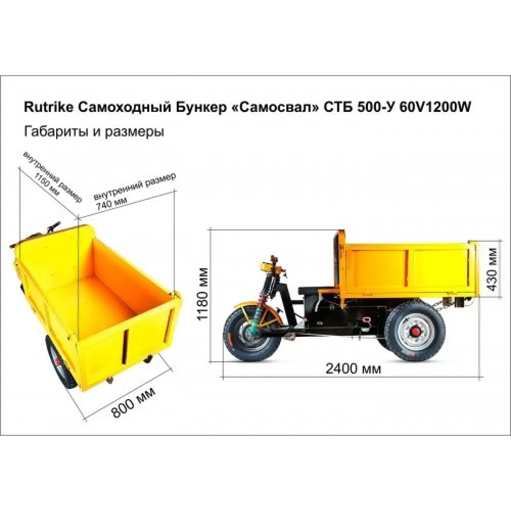 Самоходный строительный Бункер Rutrike «Самосвал» СТД 500-У 60V1200W