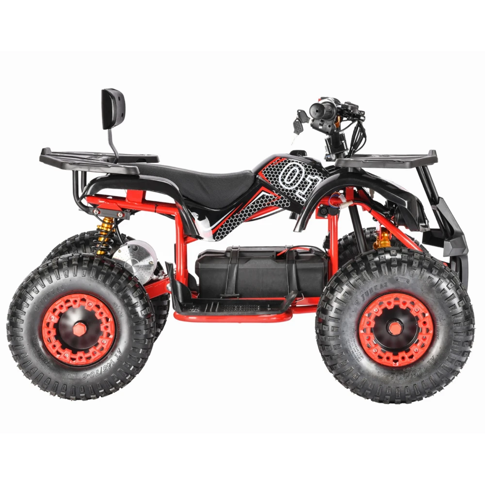 Квадроцикл представлен полной комплектацией, рассчитан на возрастную категорию от 3 до 9 лет. При мощности двигателя 1500 Вт способен развивать серьезную скорость – до 49 км/час. Продолжительность пути на одной подзарядке составляет 50 км. Максимальная грузоподъемность – 95 кг.