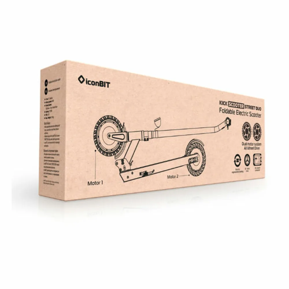 Электросамокат iconBIT Street Duo – прекрасное и современное мобильное средство передвижения по городу для взрослого человека. Это самокат с полным приводом и оснащенный сразу двумя моторными колесами.