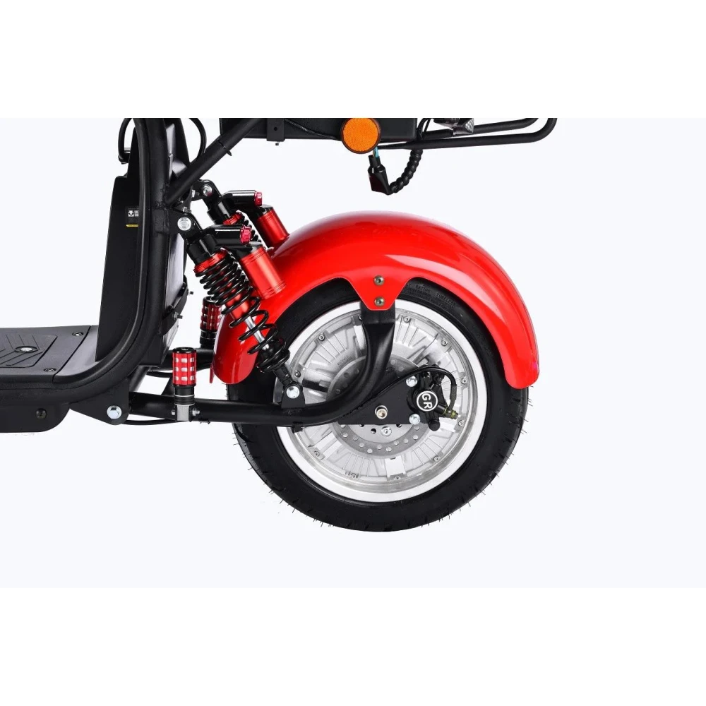 Электроскутер CityCoco WS Pro Max+ 3000W - обновленная версия полюбившейся модели индивидуального городского транспорта. Новинка получила ряд улучшений, благодаря которым каждая поездка станет еще более комфортной и приятной. Производители усовершенствовали переднюю и заднюю подвеску, повысив плавность хода при движении по различным типам дорожного покрытия. Задние амортизаторы теперь можно регулировать, подкачивая воздух. Мощный мотор обеспечивает впечатляющую скорость движения до 71 км/час, что сопоставимо со скоростью легкового автомобиля. При этом разгон происходит уверенно и плавно, без рывков. Электроскутер оснащен дополнительным сиденьем, что дает возможность водителю передвигаться вместе с одним пассажиром. Удобная платформа для ног водителя и эргономичные ручки руля обеспечивают максимальный комфорт во время поездки. Основные параметры движения отображаются на крупном электронном дисплее, который расположен по центру руля. Водитель легко может оценить набранную скорость или уровень заряда батареи. При полном заряде аккумулятор гарантирует запас хода до 65 километров. В темное время суток безопасность движения обеспечивает система освещения, в которую входит яркая передняя фара, задние габаритные огни поворотники.