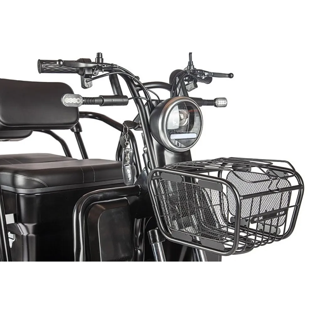 Наличие вместительной задней и передней корзины дает возможность приятного время провождения на природе, рыбалке и в других живописных местах. Наличие качественной тормозной системы, зеркал заднего вида и большой светодиодной фары обеспечивают безопасность езды в ночное время, исключает риск возникновения аварийных ситуаций.
