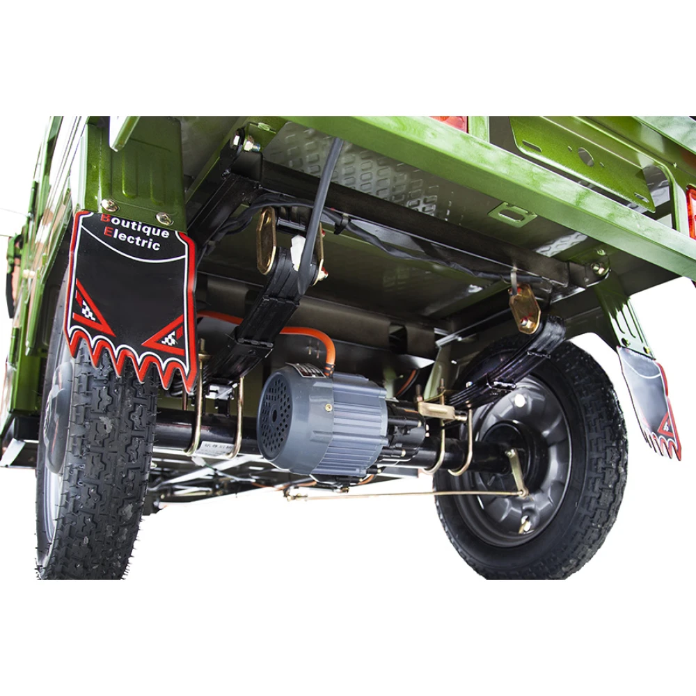 Техника изготовлена из высокопрочного материала, долго сохраняющим первоначальные характеристики при эксплуатации. Специальное покрытие надежно защищает от действия погодных явлений и механических повреждений. Низкий шум при поездке допускает использование грузового электротрицикла в складских помещениях. Техника оснащена двигателем мощностью 800 Вт, свободно развивает скорость 25 км/час, пробег на одном заряде составляет 50 км. Модель надежна и устойчива, производитель исключил возможность случайного опрокидывания. Широкий кузов позволяет перевозить грузы массой до 200 кг.