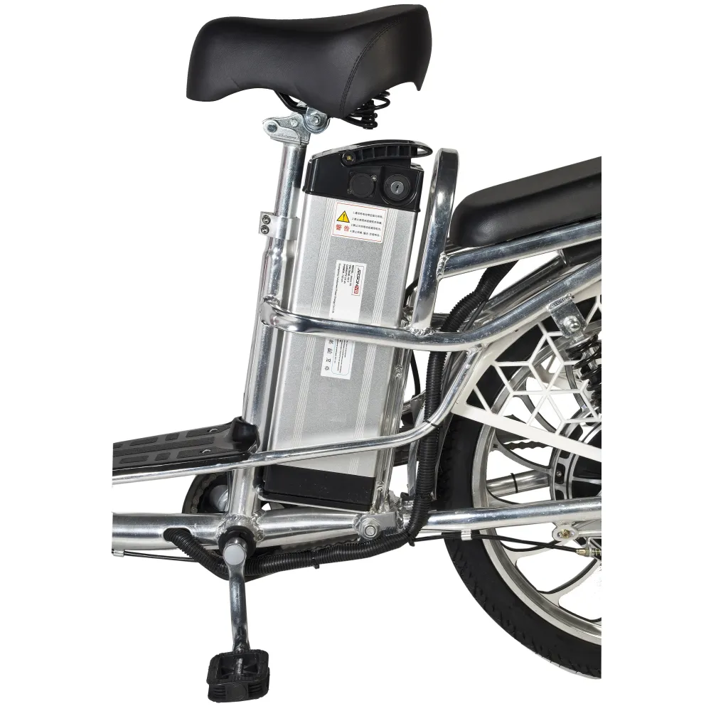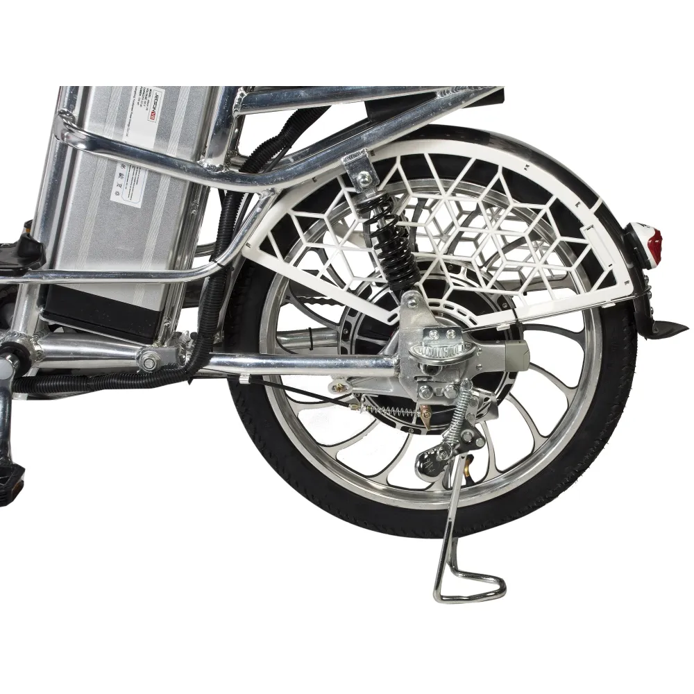 С легкостью разгонять технику до максимальных скоростных показателей 40 км/час позволяет электромотор мощностью 500 Вт, который приводится в действие благодаря емкой АКБ 13000 мАч. Одного заряде хватит на преодоление расстояния до 50 км без дополнительной подзарядки. На электровелосипеде установлена современная тормозная система Promax DISC, обеспечивающая быструю остановку. Ямы и кочки беспроблемно смягчаются фирменными амортизаторами.