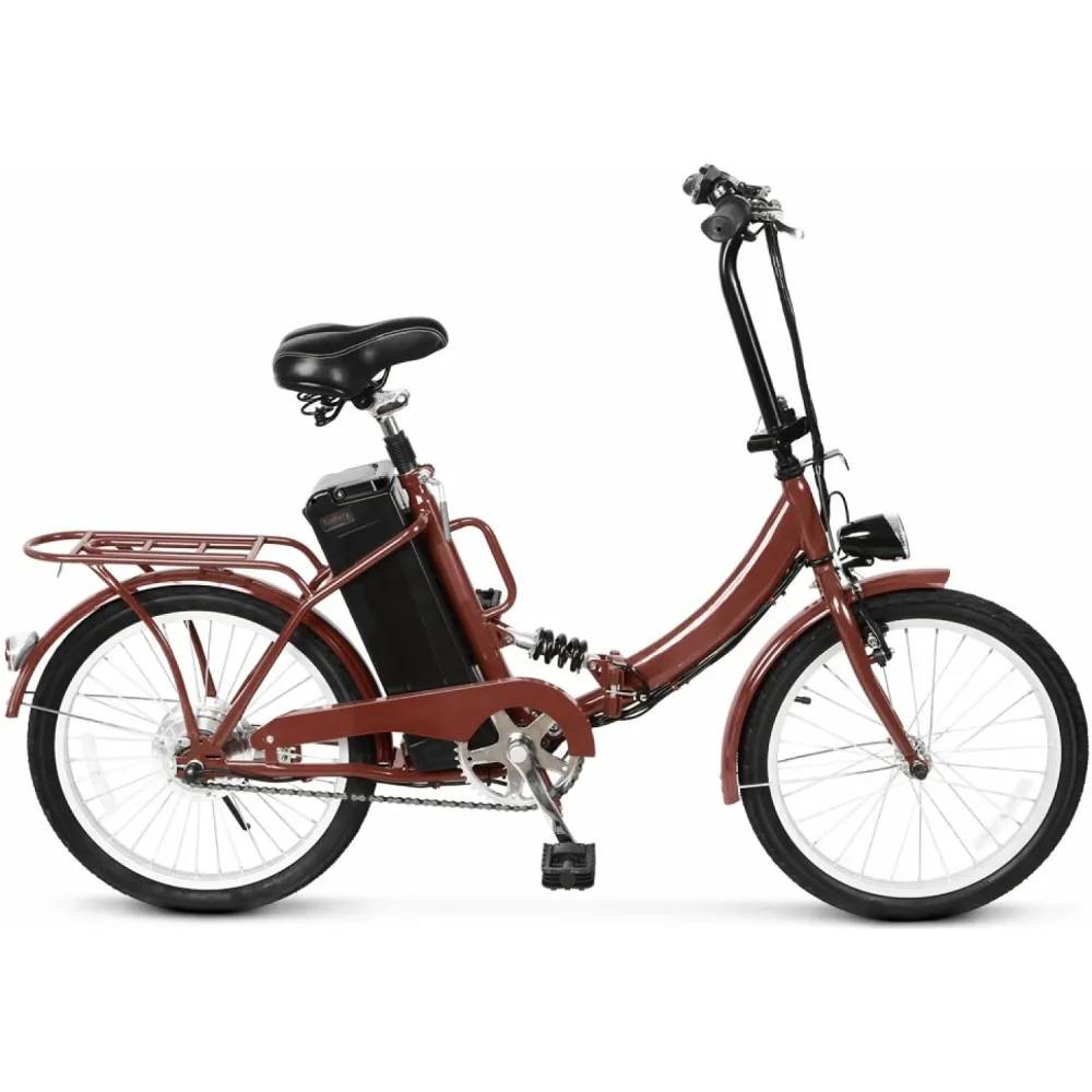 Для приобретения байка по разумной цене без переплат предлагаем связаться по телефону или в чате с менеджером нашего интернет-магазина. При параметрах электродвижка в 250 Вт городской байк способен разогнаться до 22 км/час. Максимальное преодоление дистанции без дополнительной подзарядки составляет 35 км. Техника оснащена быстросъемной батареей емкостью 10 А*ч, которая размещена за подседельной частью, не мешает райдеру при езде на продолжительные расстояния. Стальная конструкция рамы – складная, трансформируется одним движением руки, превращается в удобные для транспортировки и хранения размеры. Анатомическое седло регулируется в соответствии с ростовыми параметрами райдера, исключает проблемы с позвоночником и ощущение усталости. 20-дюймовая накатистая часть гарантирует отличную прохождаемость по разным видам поверхности. Если вас заинтересовал байк, предлагаем позвонить нам прямо сейчас.