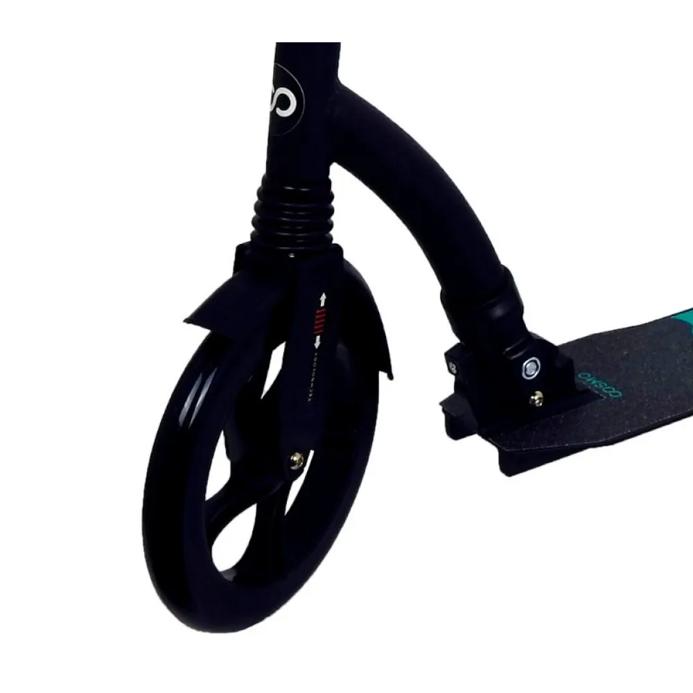 Колеса COSMO Wave с подшипниками класса ABEC 7 позволяют с легкостью преодолевать неровности дороги (трещины и рельефность покрытия). Диаметр переднего колеса составляет 230 мм, а заднего – 200 мм.