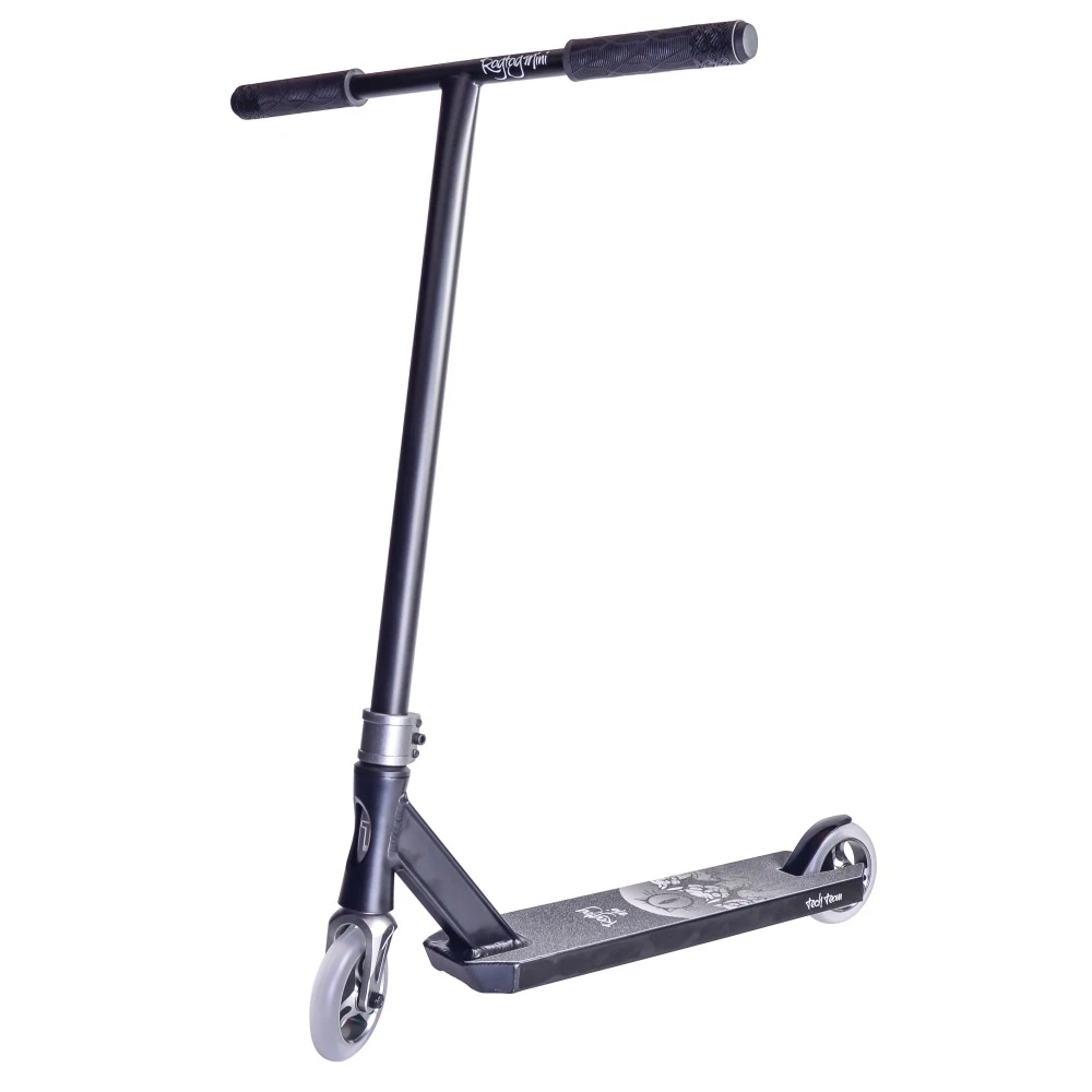 Трюковой самокат TechTeam RAGTAG MINI черно-серый представлен в классическом дизайне. Востребован большинством отечественных райдеров из СНГ. Техника неоднократно доказала высокое качество и соответствие требованиям евростандарта. Сегодня она раскупаемая, не залеживается на полках магазина.