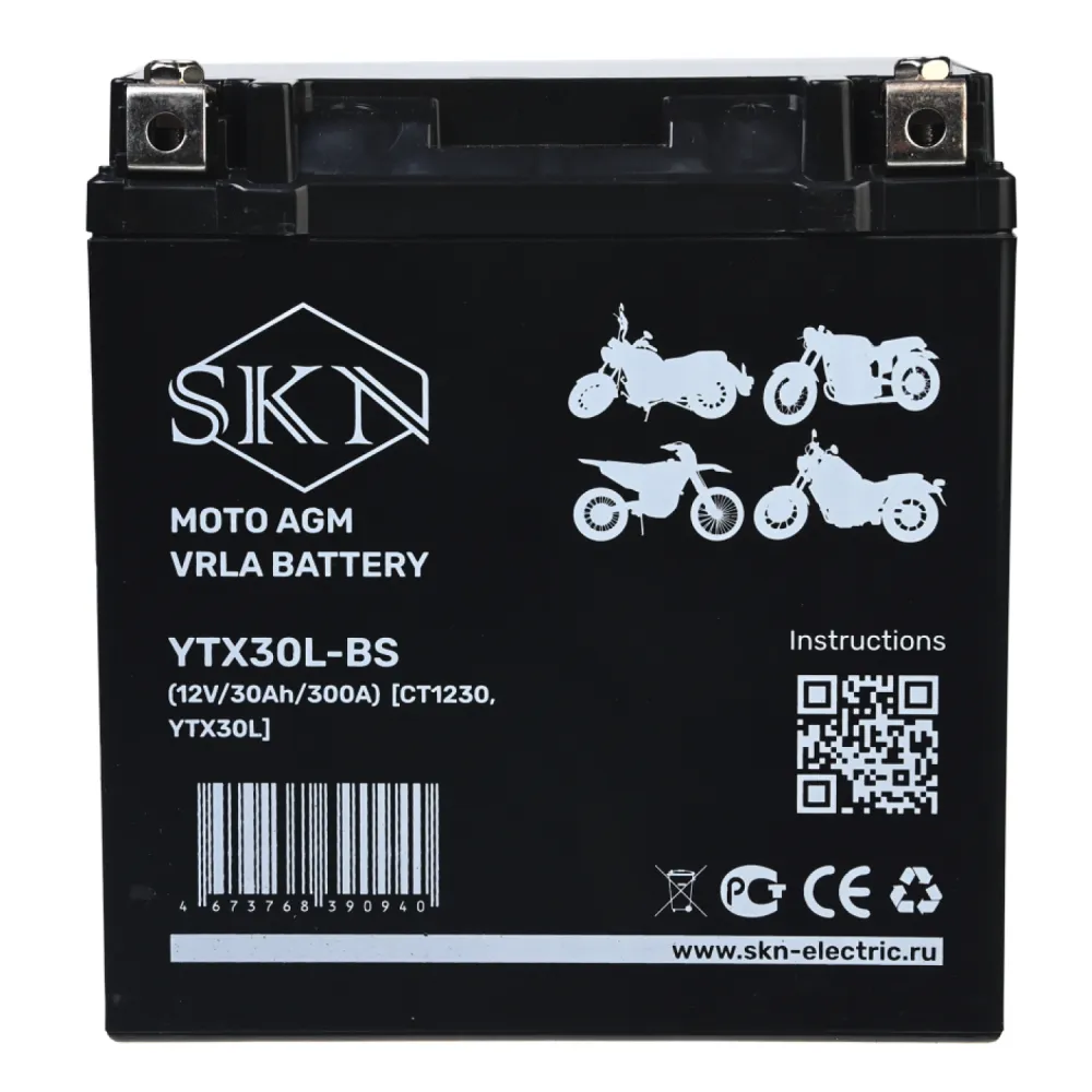 Аккумулятор стартерный для мототехники Rutrike SKN YTX30L-BS (12V/30Ah/300A) [CT 1230, YTX30L]